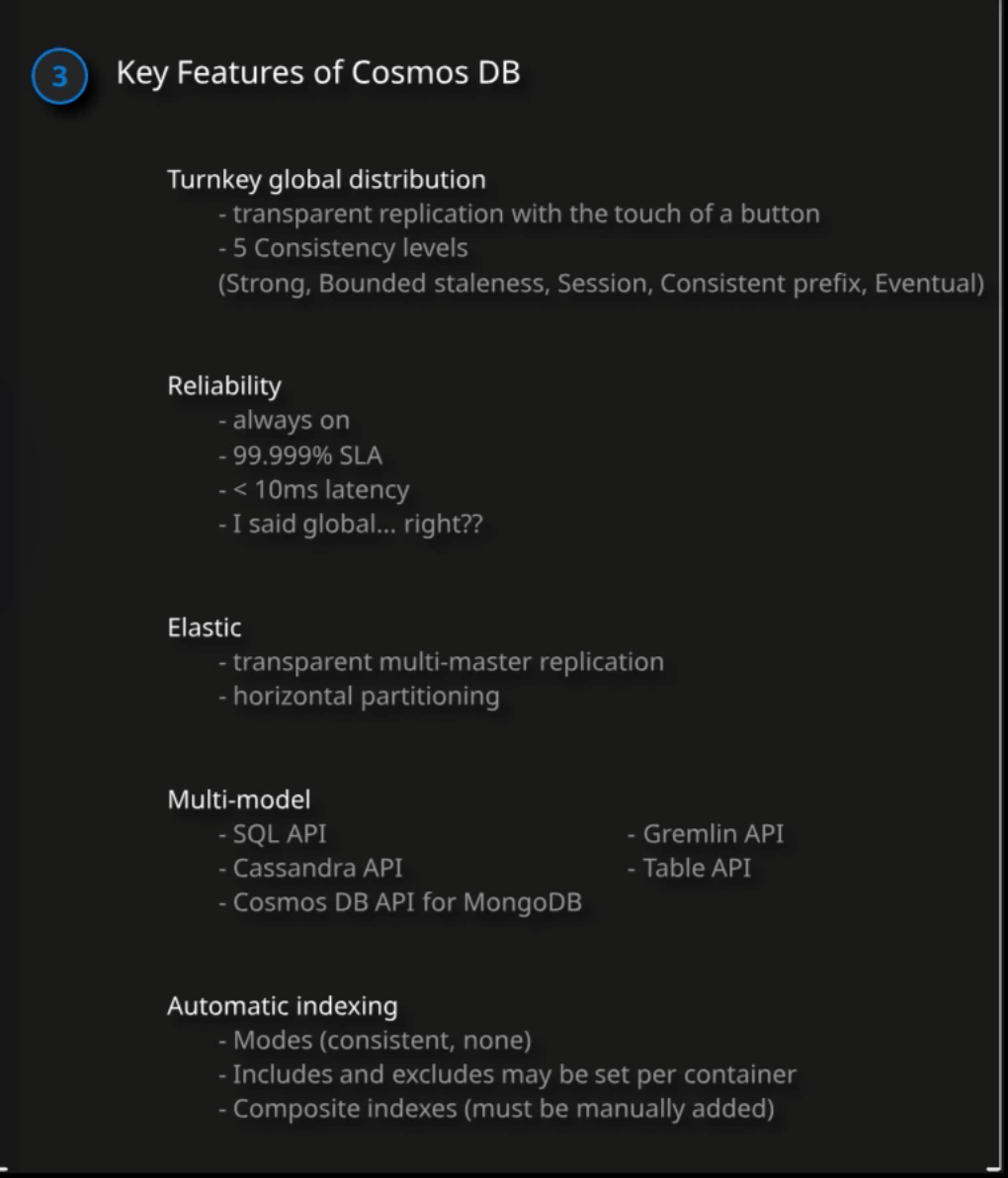 Cosmos DB is a very elastic system that uses horizontal partitioning for