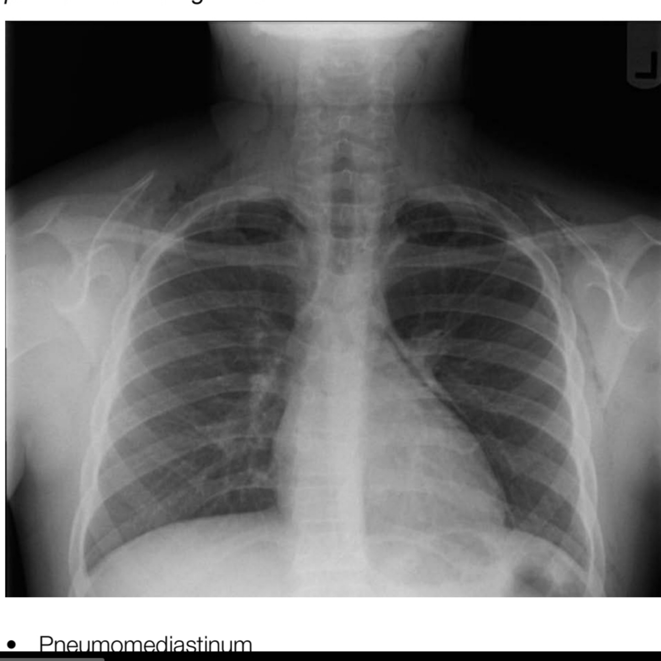 Cause of pneumomediastinum: Traumatic intubation or tracheostomy/NG