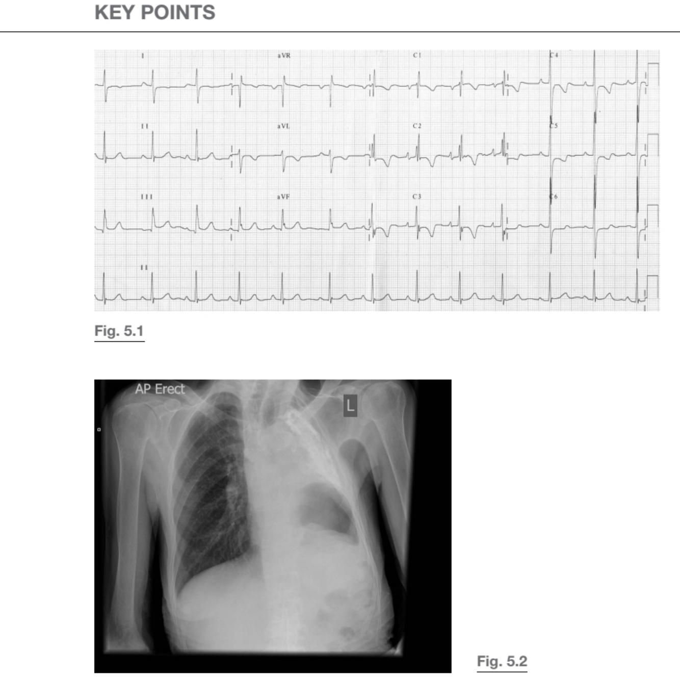 • Tall R waves in lateral leads V5 and V6 with mild ST segment depression