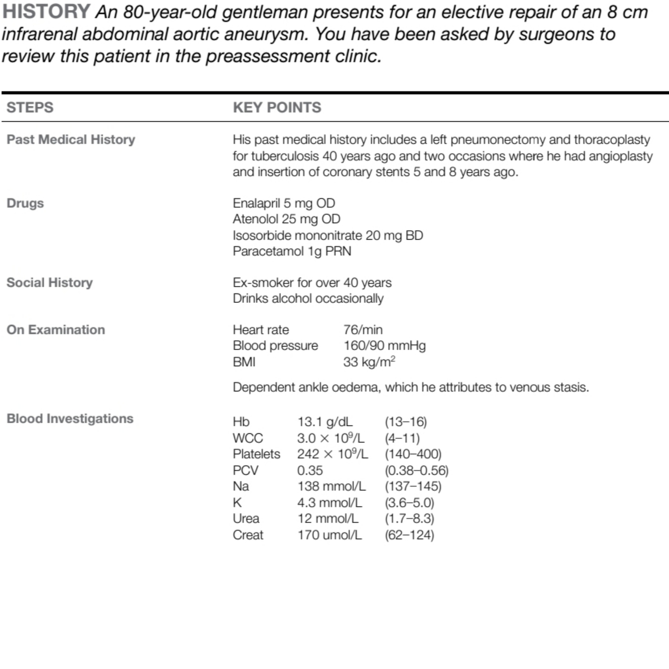 I would like to take a full history, examination, and review and consider additional investigations and ensure full optimisation of his comorbidities before considering his options with both the patient and his surgeon
