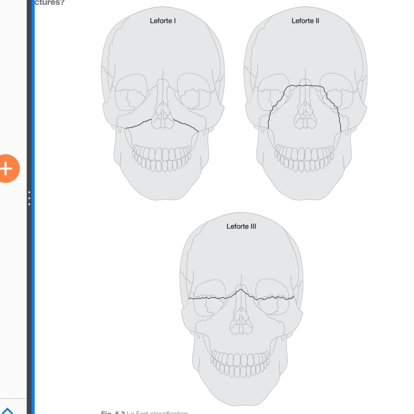 • Other facial fractures (i.e. nose, maxilla Le Fort fracture type I horizontal,