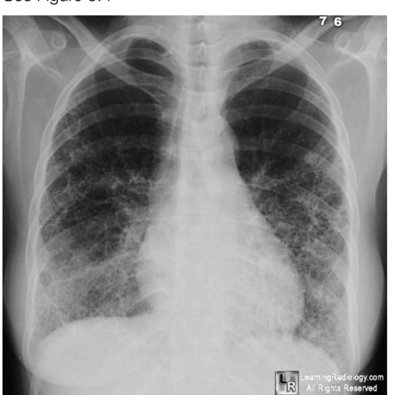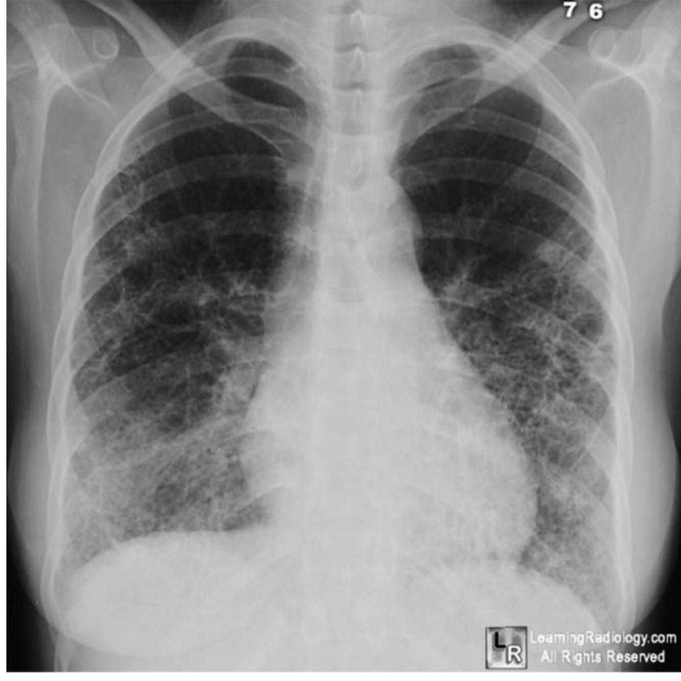 Diagnosis: Pulmonary fibrosis. This can be because of the disease