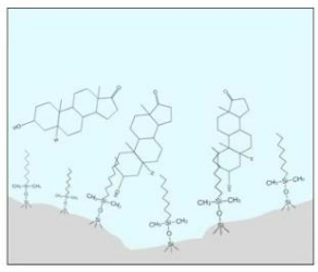 The most common phases are the hydrophobic alkyl chains- C18, C8 and C4