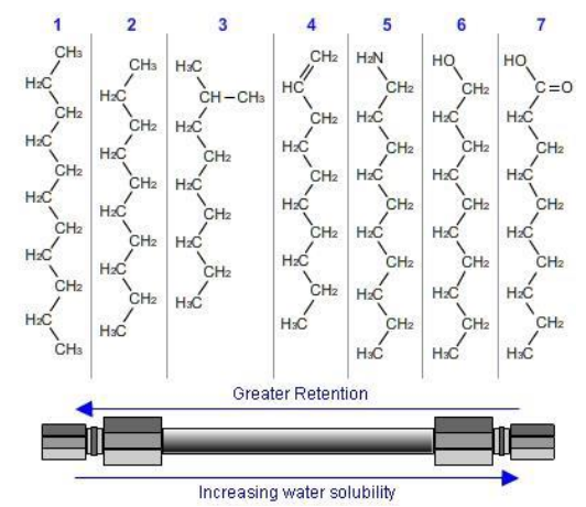 The straighter the chain (As opposed to branched), the more retention.