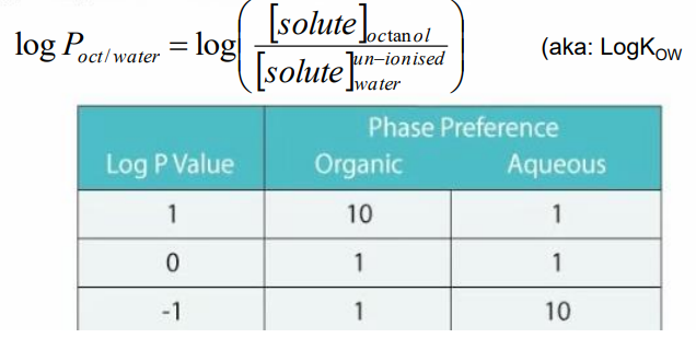 Log P -1 favours - Aqueous portion