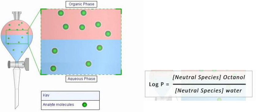 Log P 1 favours - Organic portion