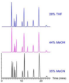 Each solvent will interact differently with differing analyte moieties