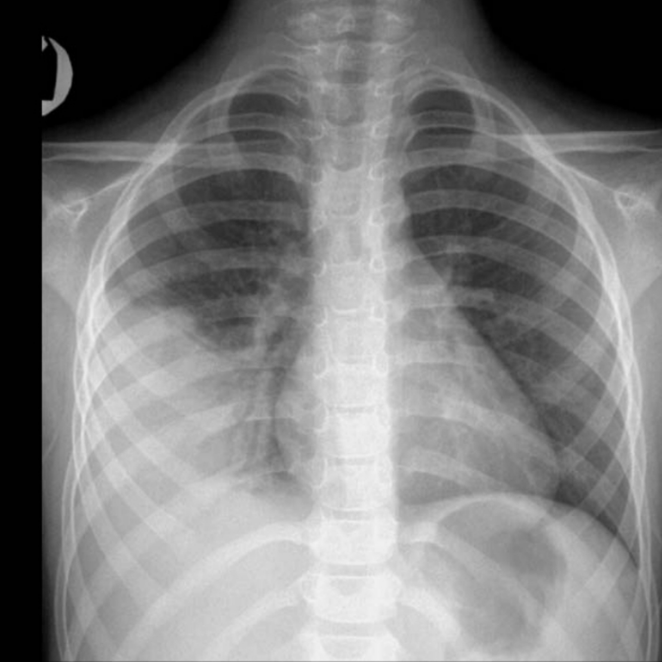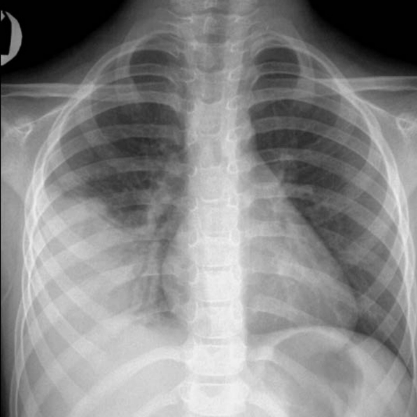 Diagnosis: Right lower lobe pneumonia.