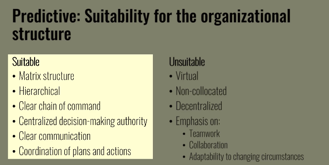 What type of organization is suitable for a predictive ? What is unsuitable for a predictive ?
