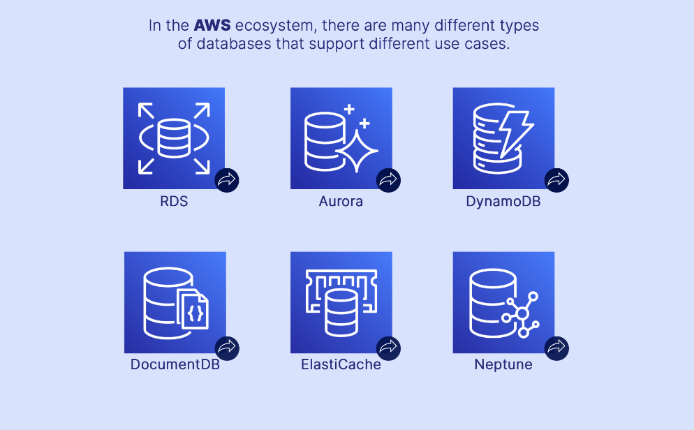 List 6 different types of databases supported by the AWS ecosystem?
