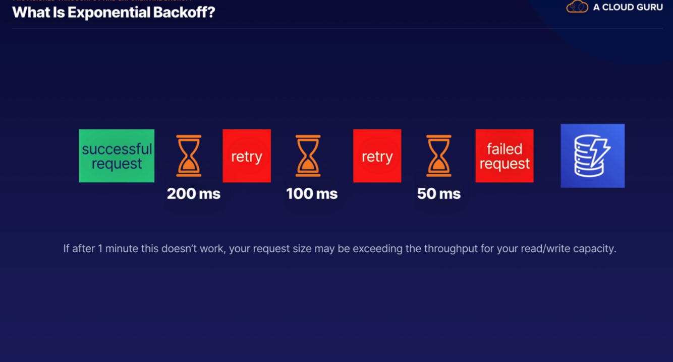 In addition to simple retries, all AWS SDKs use exponential backoff.