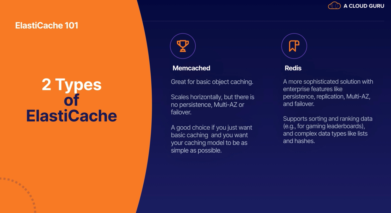 ElastiCache is a fully managed in-memory datastore compatible with Redis or Memcached.