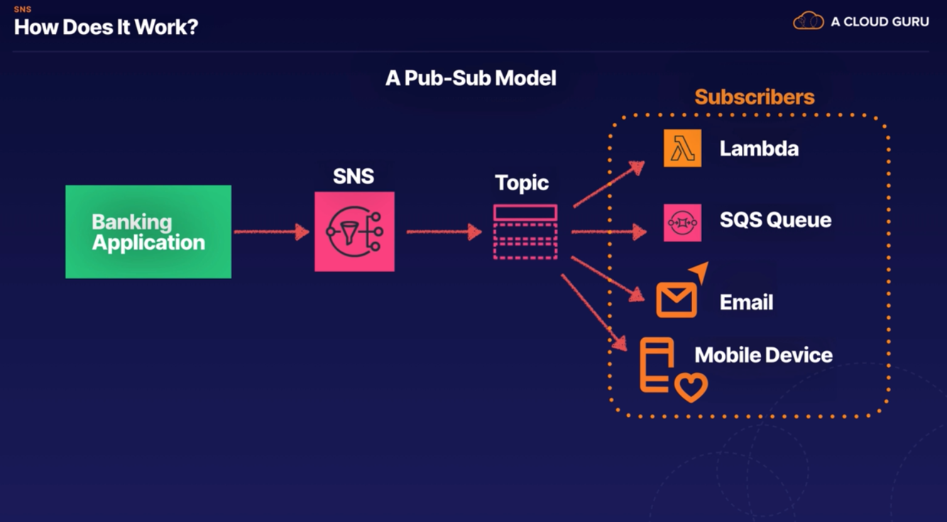 • SMS text message or email to Amazon Simple Queue(SQS) queues or any HTTP endpoint