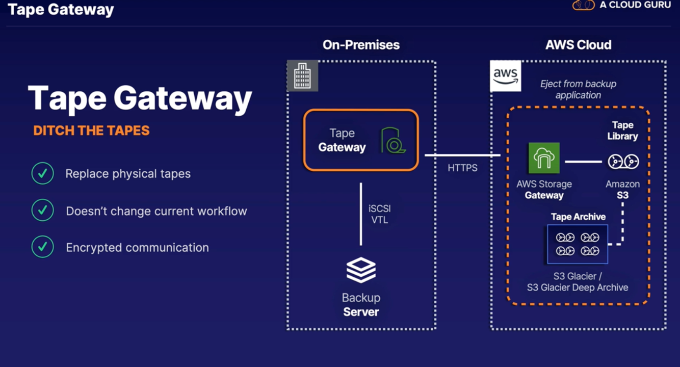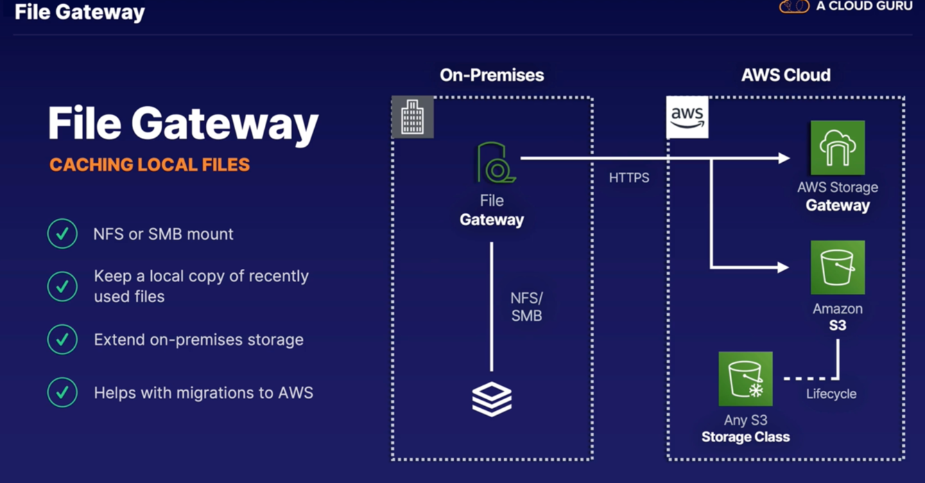 • Storage Gateway is a hybrid cloud storage service that helps you merge on-premises resources with the cloud.