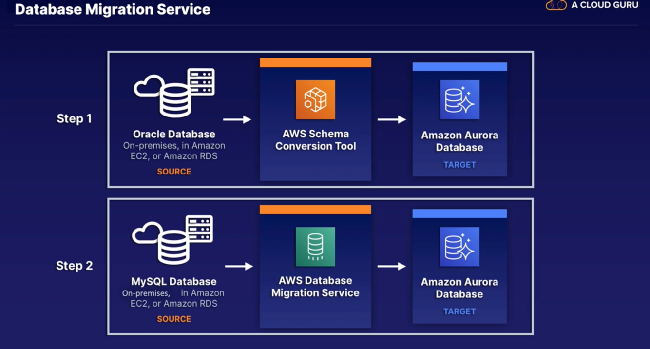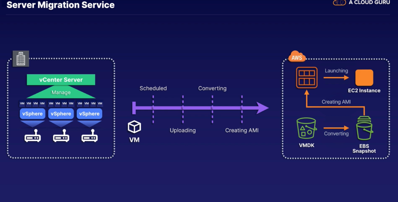 • It integrates with Server Migration Service (SMS) and Database Migration Service(DMS).