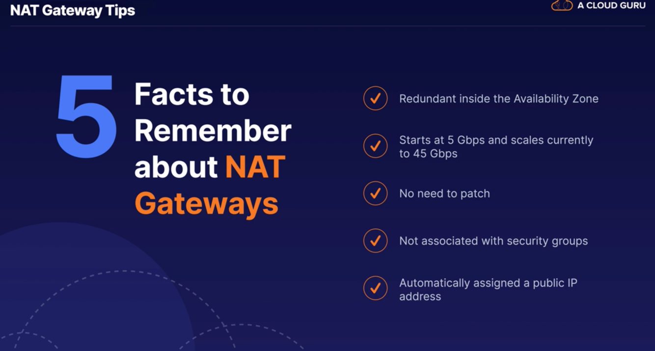 • If you have EC2 instances writing to S3 you do not want them going over the NAT gatway since they will impact your bandwidth but rather through VPC end points.