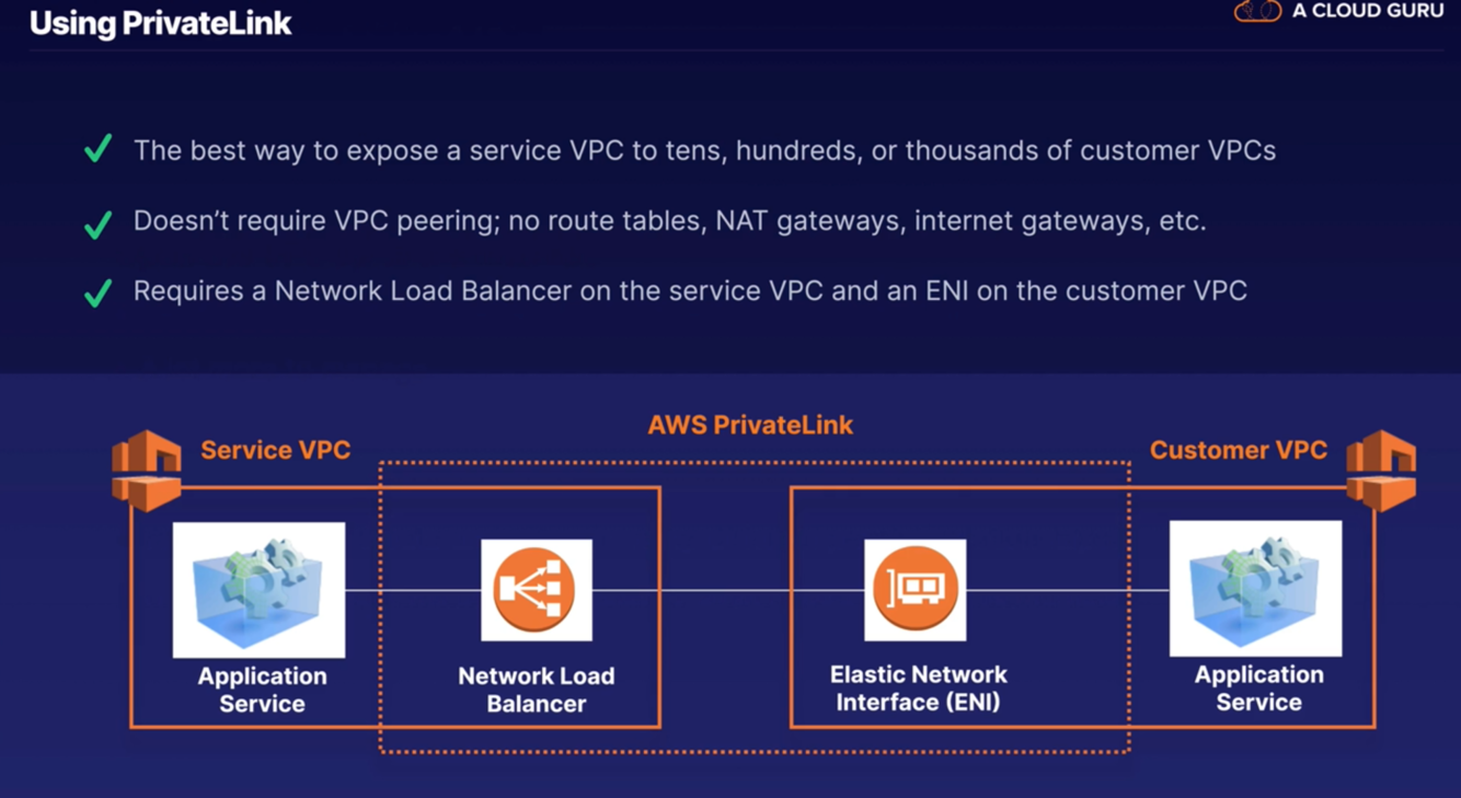 • The best way to expose a service VPC to tens, hundreds, or thousands of customer VPCs