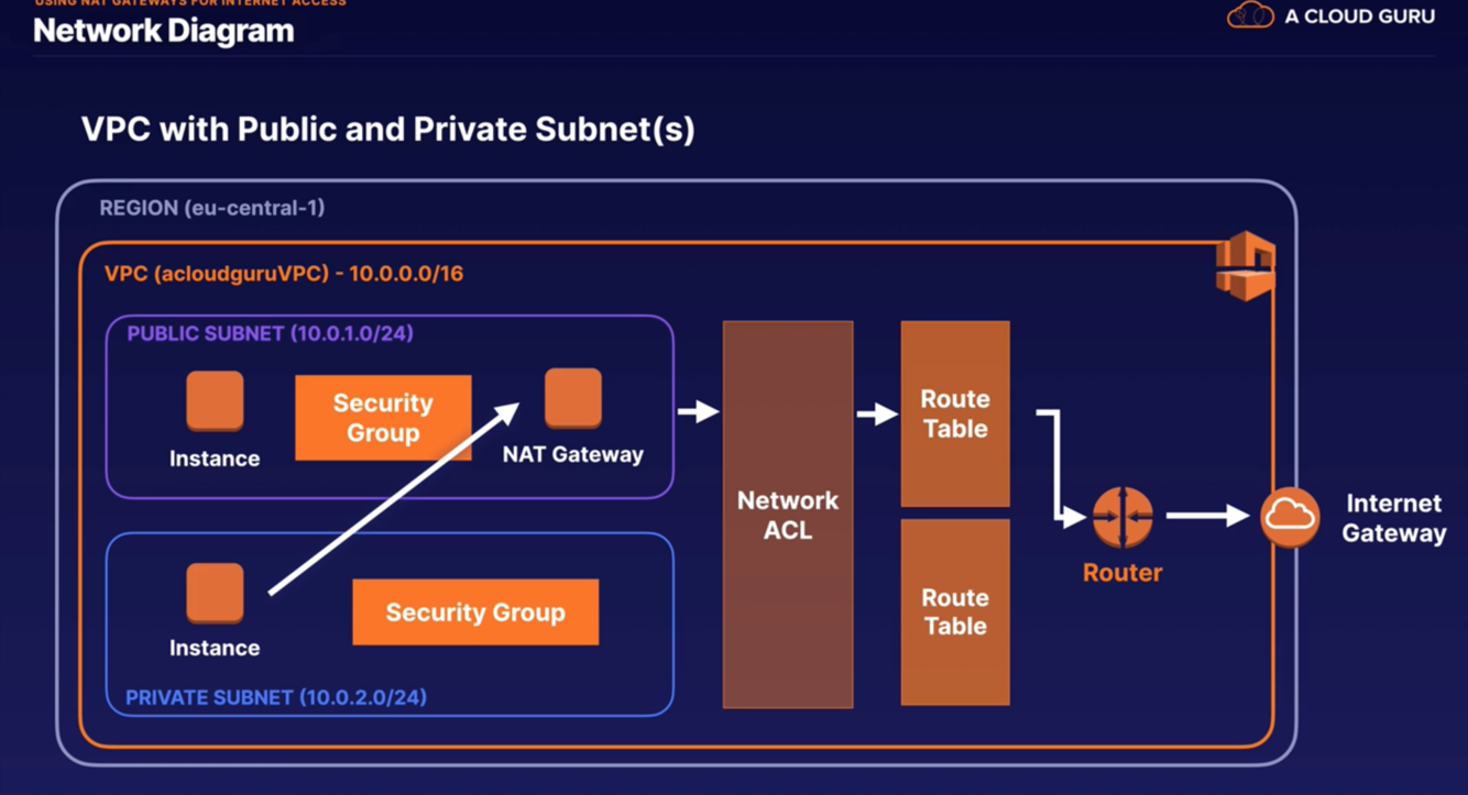 You can use a network address translation (NAT) gateway to enable instances in a prvate subnet to connect to the internet or other AWS services while preventing the internet from initiating a connection with those instances.