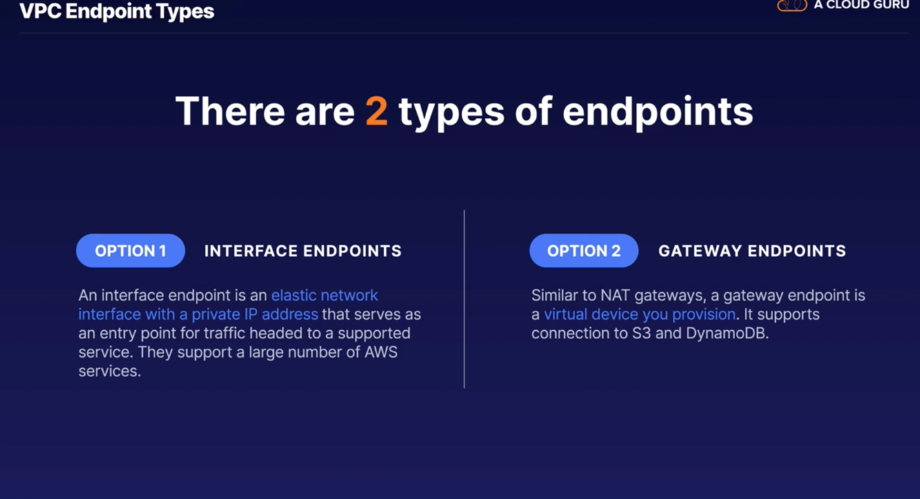 A VPC endpoint enables you to privately connect your VPC to supported AWS services and VPC endpoint services powered by PrivateLink without requiring an internet gateway, NAT device, VPN connection or AWS Direct Connect connection.