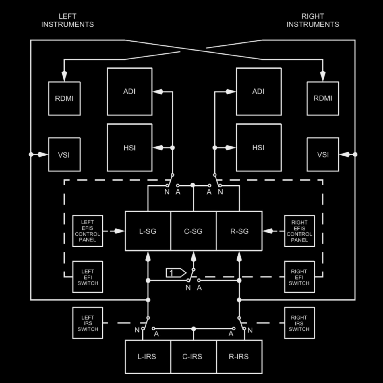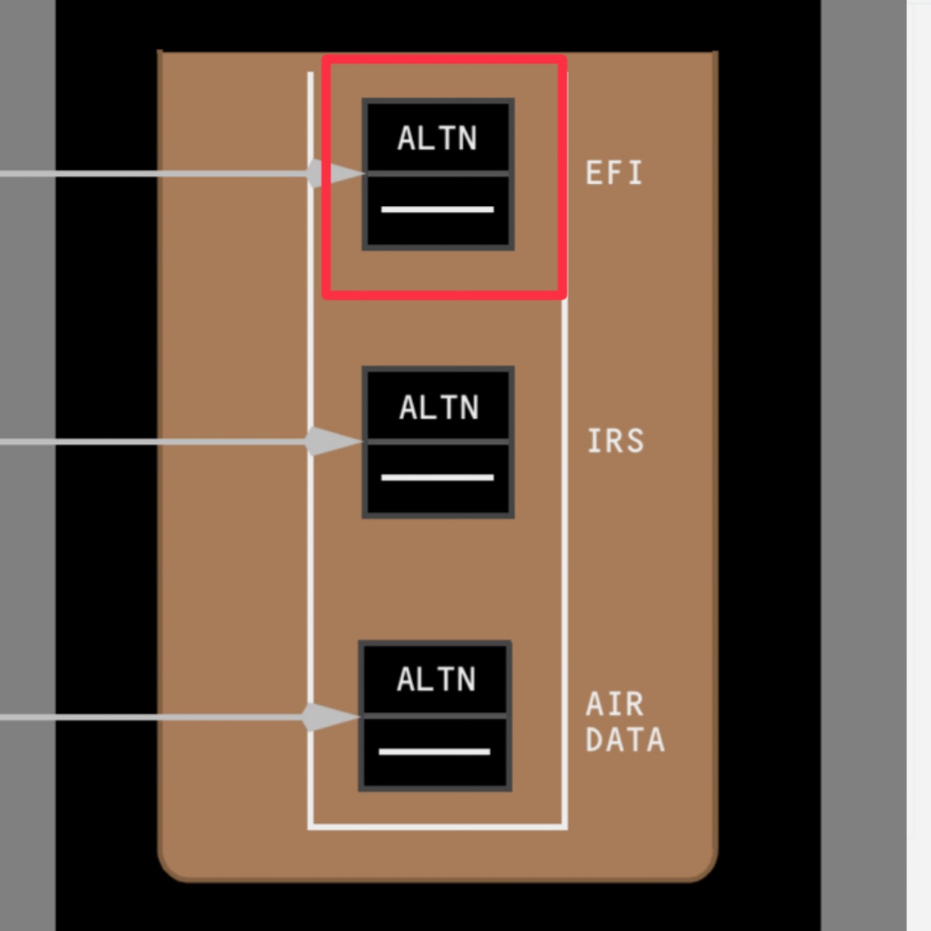With respect to the Instrument Source Panel what is accomplished when selecting the Captain’s Electronic Flight Instrument (EFI) Switch from Normal to Alternate?