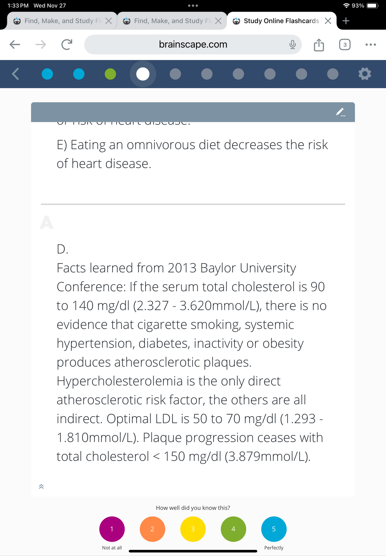 If total chol is 90-140, plaque progression ceases and other risk factors (e.g., smoking, ob, inactivity) don’t produce plaques