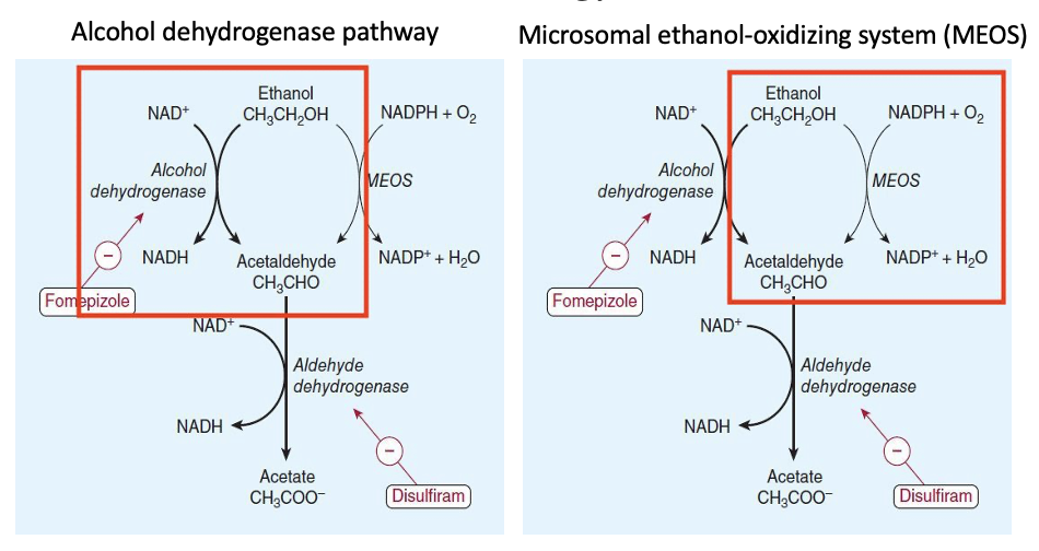 What are the 2 major pathways of metabolism to acetaldehyde?