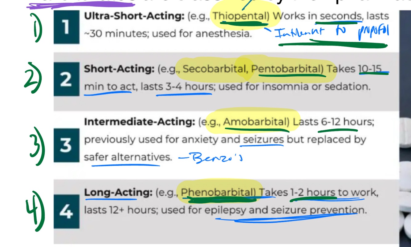 Short-acting barbiturates are often used for sedation, while long-acting ones are used for epilepsy.