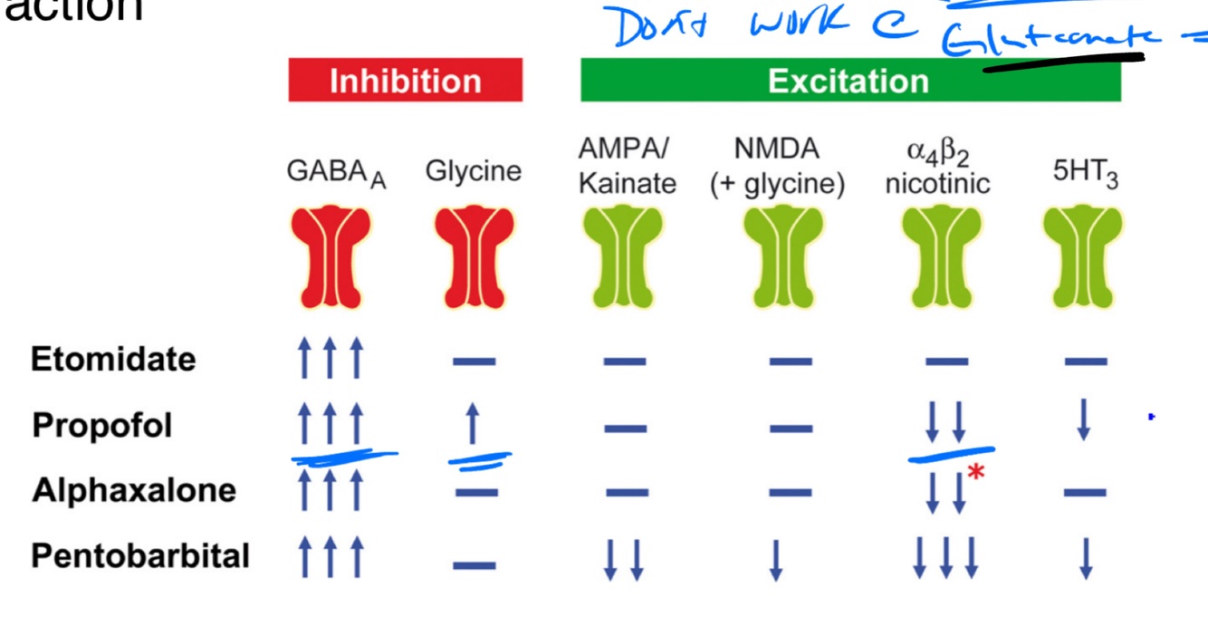 This primarily affects the GABA A receptor, leading to sedation and hypnosis.