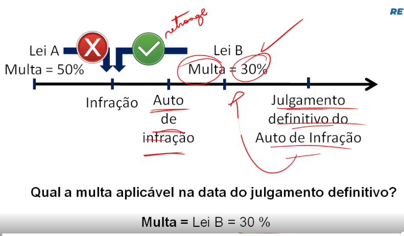 A lei poderá retroagir para beneficiar contribuinte em caso de diminuição de penalidade de multa e também em caso de lei interpretativa, que beneficie o contribuinte, mas nunca retroagirá em caso de tributo.