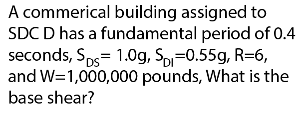 To solve this problem you need to know the formula for base shear and seismic response coefficient.