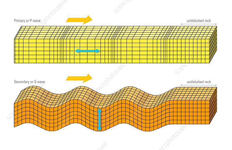 P waves are the fastest kind of seismic wave. They are compressional waves and can move through solids, liquids, and gases