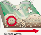 Surface waves are waves that only move along the surface of the Earth. They are the slowest seismic wave and are similar to the ripples on the surface of a pond.