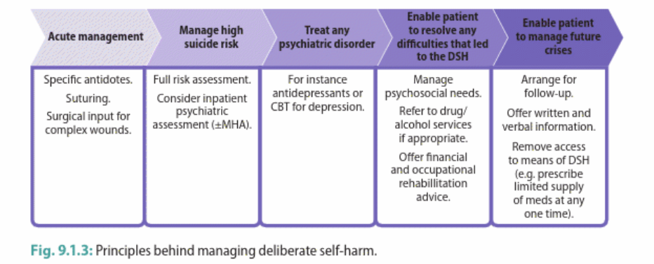Discuss general points in management of self-harm