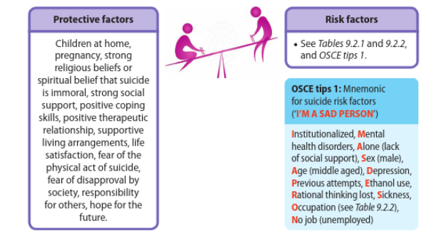 State some risk factors for suicide- think about biological, psychological & social risk factors