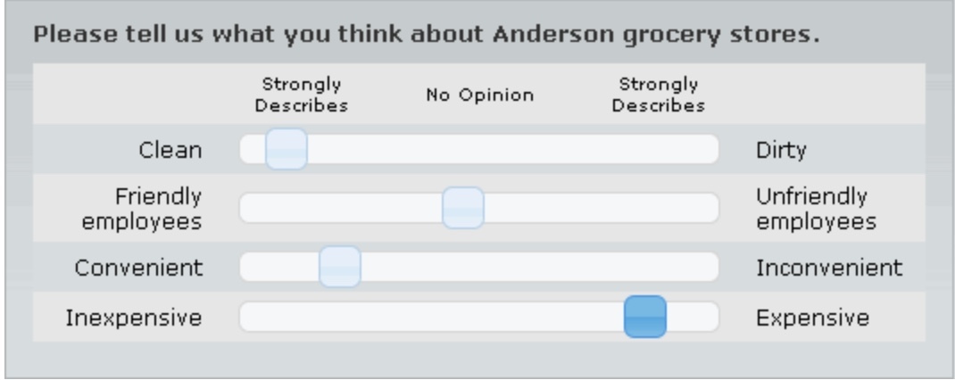 e.g. On a scale of 1-10 How much do you love Chocolate? (1 being low, 10 being high)