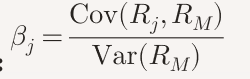 covariance of asset j with market divided by variance of the market