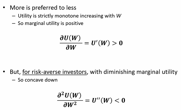 utility function requirements for risk averse investor