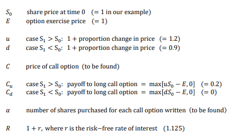 Nomeclature for 1 period binomial model