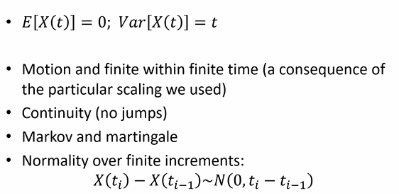 key properties of the Brownian motion (definition)