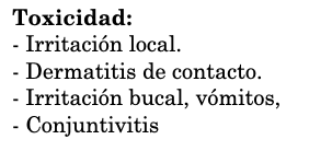 Sintomatología: dermatitis por contacto directo, con enrojecimiento, llagas.. Tras su ingestión: trastornos GI, dolor abdominal, vómitos, alteraciones renales con hematuria, INTOXICACIÓN RENAL, calambres, coma, parada respiratoria
