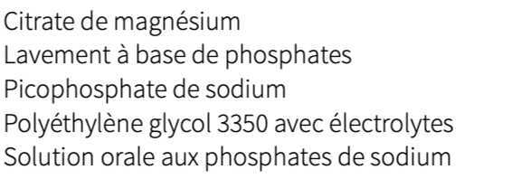 constipation - préparation des examens (picosulfate de Na, acide citrique et hydroxyde de Mg) : décrire ces solutions