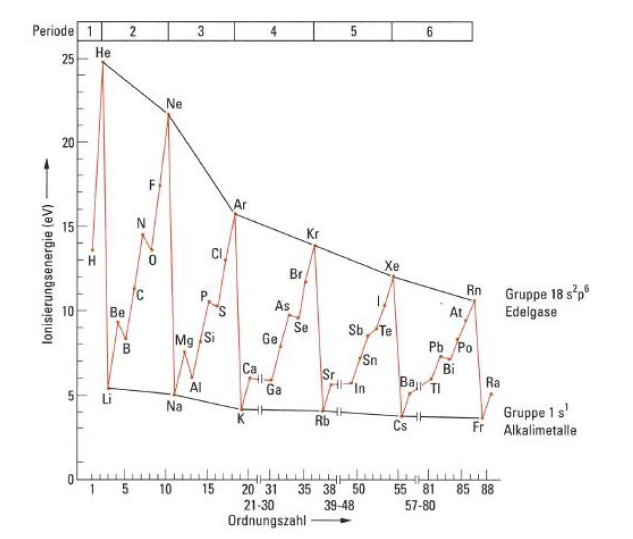 Wie und warum verändert sich die 1. Ionisierungsenergie der Atome mit steigender Ordnungszahl