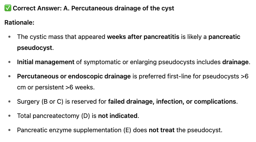 A. Percutaneous drainage of the cyst