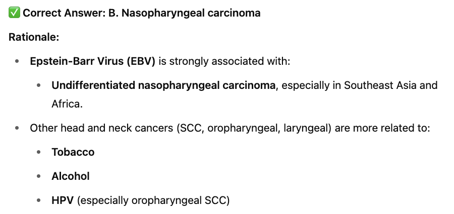 Which type of head and neck cancer is associated with Epstein-Barr Virus (EBV)?