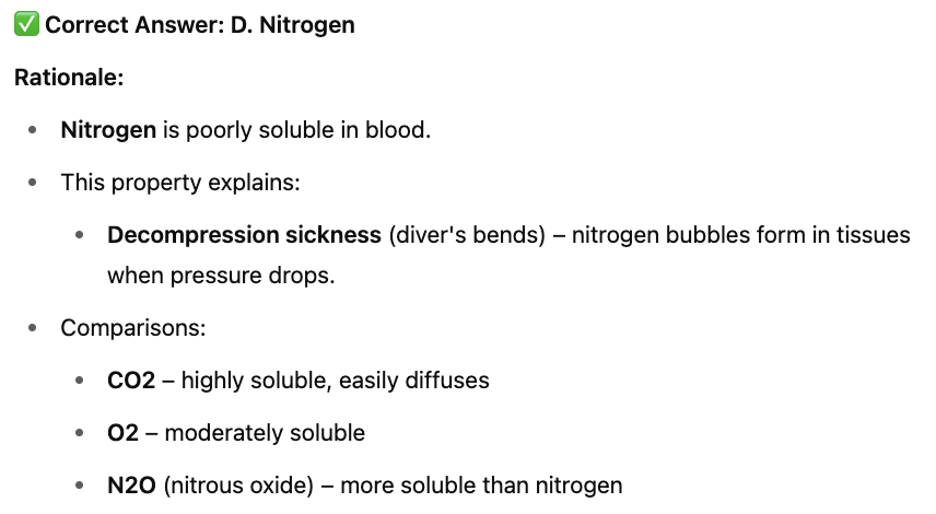 Which gas is poorly soluble in blood?