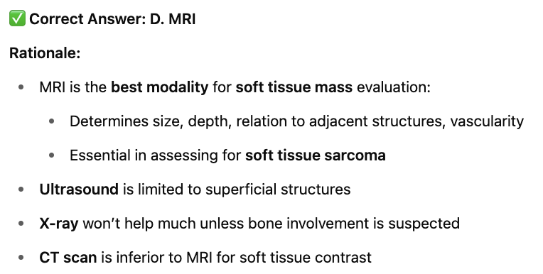 What is the imaging of choice for a 7-cm painless mass on the upper thigh?