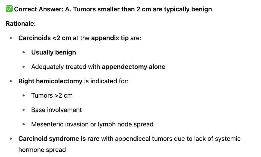 D. Appendectomy is insufficient treatment for any carcinoid tumor