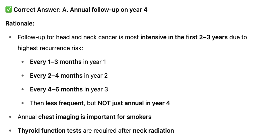 A. Annual follow-up on year 4