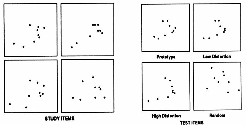 => If the test item resembled the prototype (pictures present in the training phase) - more likely to say it is the same category