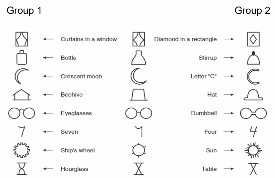 - 2 groups, each given a different explanation of the pictures